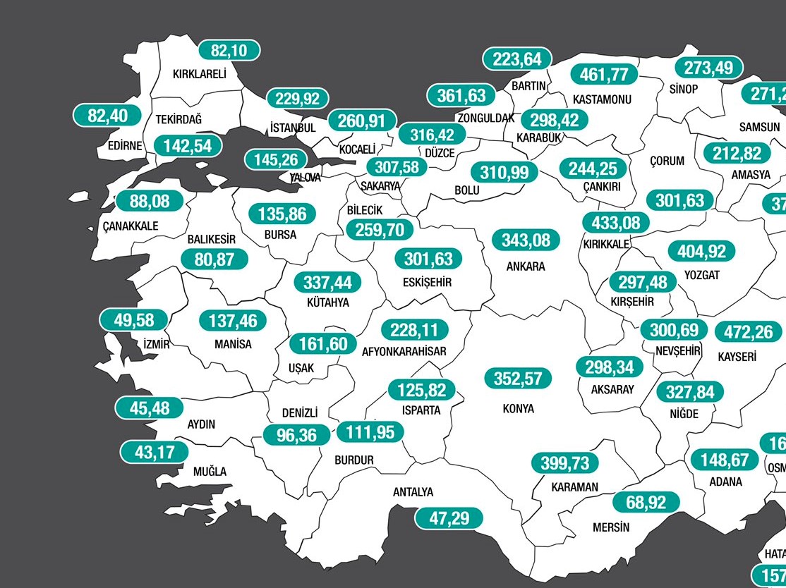 Kastamonu, Kırıkkale, Zonguldak, Tokat, Trabzon, Malatya, Yozgat, Düzce, Erzincan, Çorum.