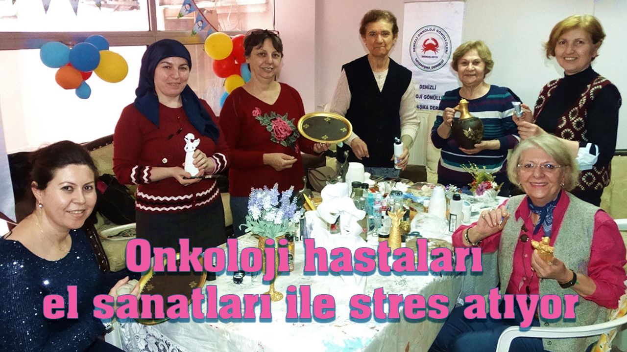 Denizli Onkoloji Gönüllüleri Derneği; haftada bir gün onkoloji hastaları ve hasta yakınları için el sanatları kursu düzenliyor. Evlerde kullanılmayan şişe, bardak, tepsi gibi eskimiş objeleri boyayarak güzelleştiren kursiyerler, stres attıkları kursta zamanın nasıl geçtiğini anlamıyorlar.