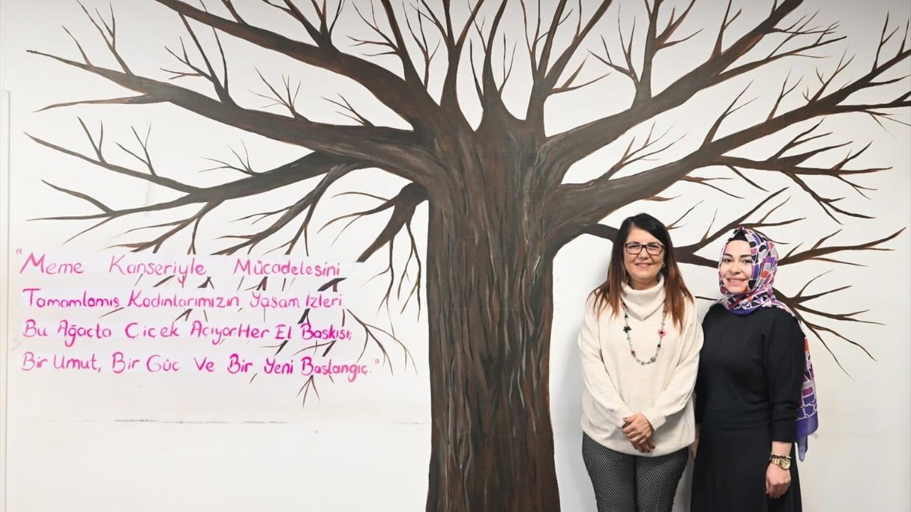 Onkoloji polikliniğinin duvarına resmedilen ağaç, tedavisi tamamlanan kadınların el baskılarıyla her geçen gün çiçek açıyor. Her bir el izi; umudu, dayanışmayı ve hayata yeniden tutunmayı simgelerken, proje aynı zamanda hastalar için tedavi sürecine anlamlı bir veda niteliği taşıyor.